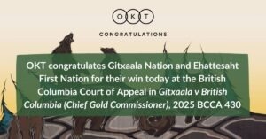 OKT congratulates Gitxaala Nation and Ehattesaht First Nation for their win today at the British Columbia Court of Appeal in Gitxaala v British Columbia (Chief Gold Commissioner), 2025 BCCA 430.